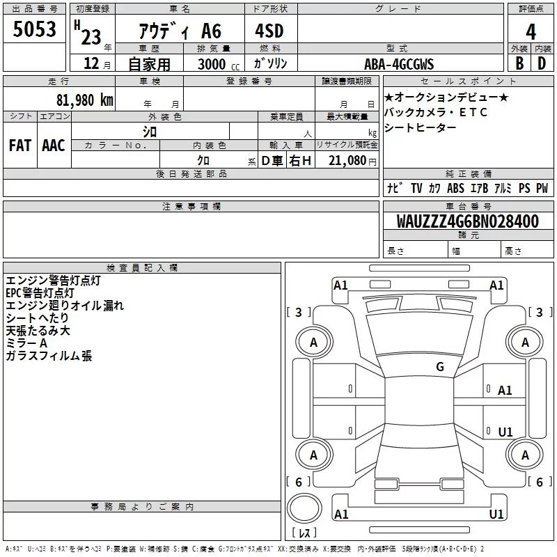 Audi A6 с аукциона Японии TAA Kinki лот № 5053