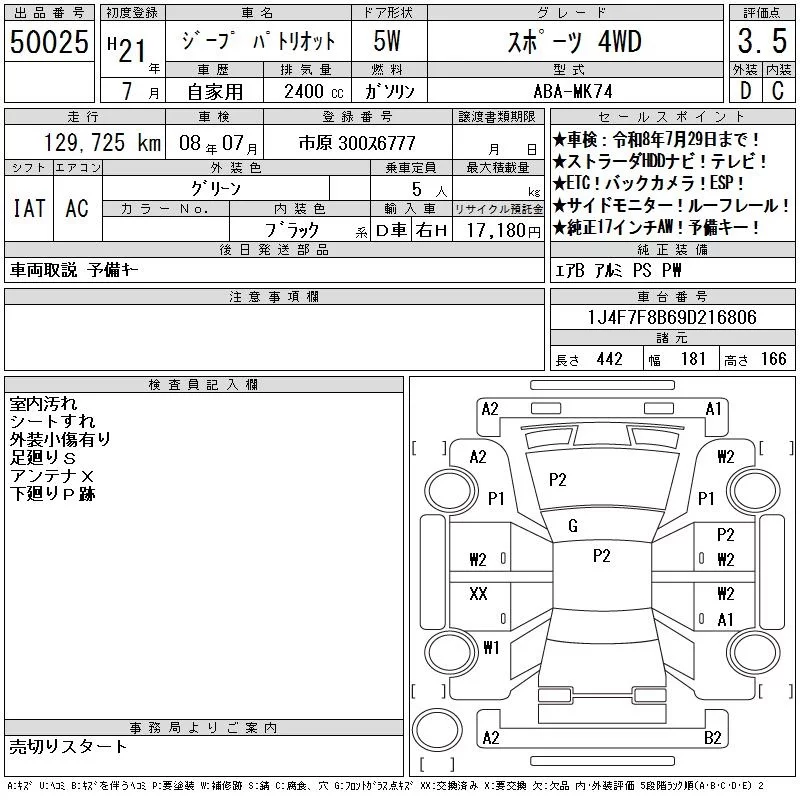 Chrysler JEEP PATRIOT с аукциона Японии CAA Tokyo лот № 50025