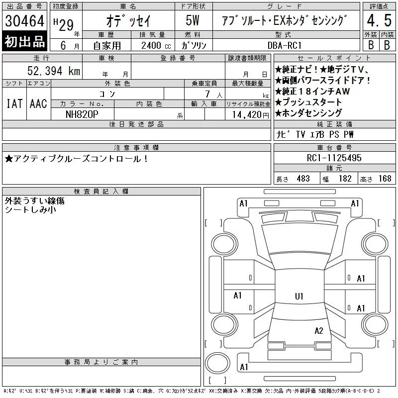Honda ODYSSEY с аукциона Японии CAA Tokyo лот № 30464
