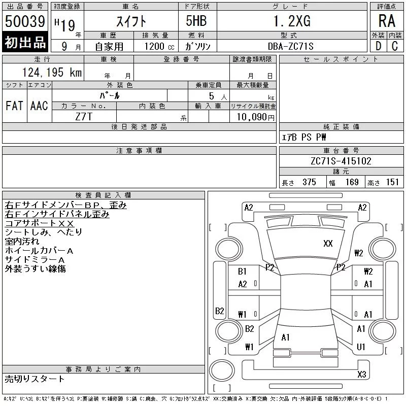 Suzuki SWIFT с аукциона Японии CAA Tokyo лот № 50039
