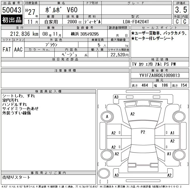Volvo V60 с аукциона Японии CAA Tokyo лот № 50043
