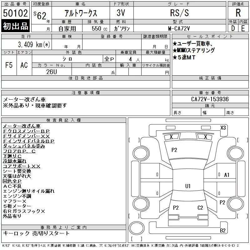 Suzuki ALTO VAN с аукциона Японии CAA Tokyo лот № 50102