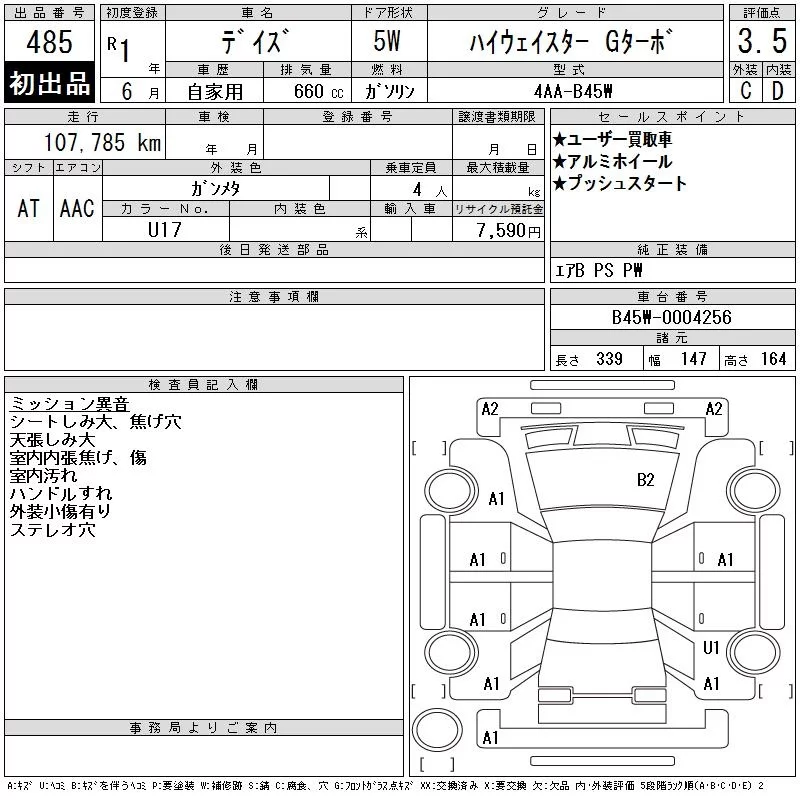 Nissan DAYZ с аукциона Японии CAA Tokyo лот № 485