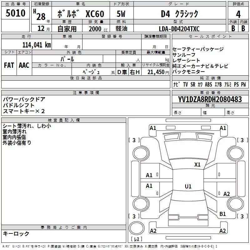 Volvo XC60 с аукциона Японии TAA Kyushu лот № 5010