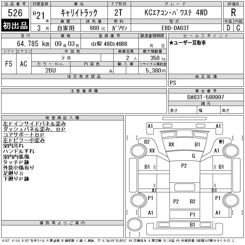 Suzuki CARRY TRUCK с аукциона Японии CAA Tokyo лот № 526