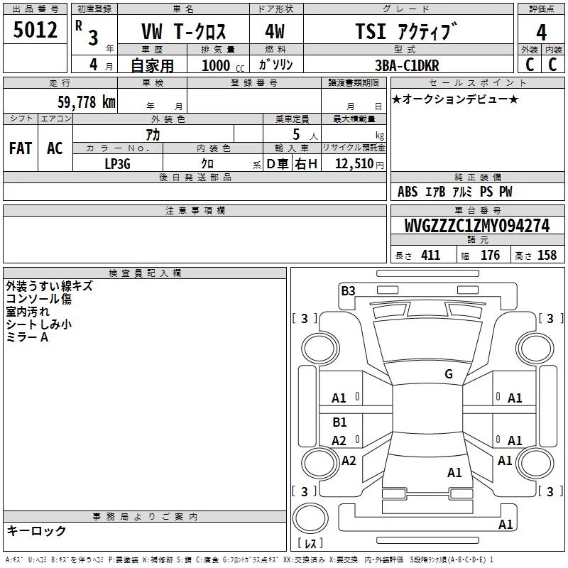 Volkswagen T-CROSS с аукциона Японии TAA Kyushu лот № 5012