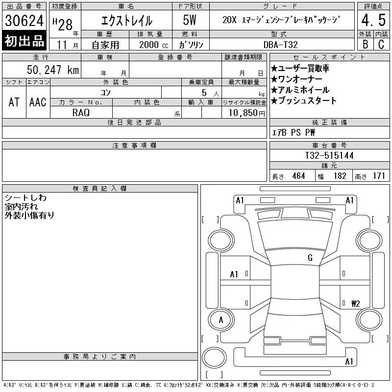 Nissan X-TRAIL с аукциона Японии CAA Tokyo лот № 30624