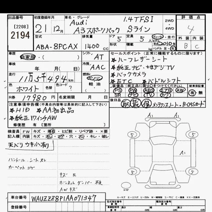 Audi A3 с аукциона Японии JU Saitama лот № 2194
