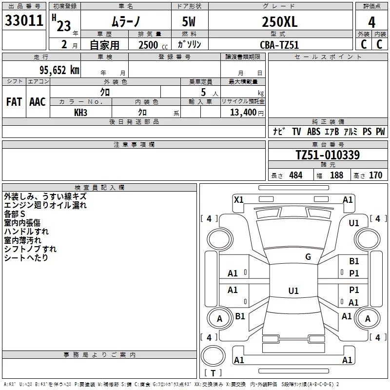 Nissan MURANO с аукциона Японии TAA Kinki лот № 33011