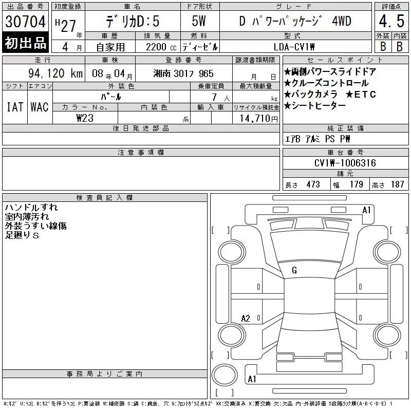 Mitsubishi DELICA D5 с аукциона Японии CAA Tokyo лот № 30704
