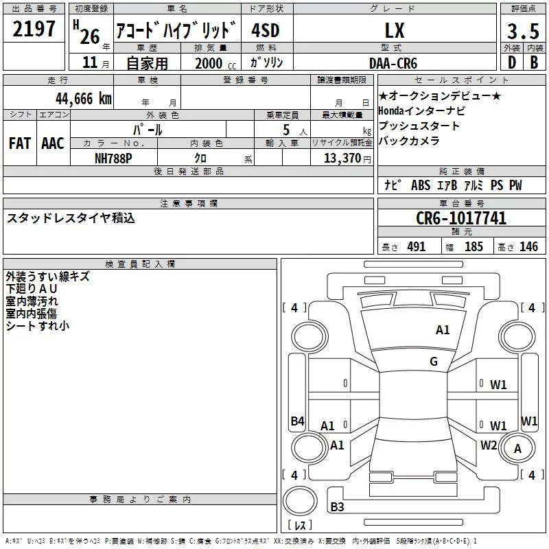 Honda ACCORD с аукциона Японии TAA Kinki лот № 2197