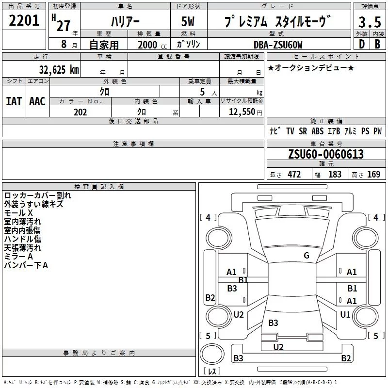 Toyota HARRIER с аукциона Японии TAA Kinki лот № 2201
