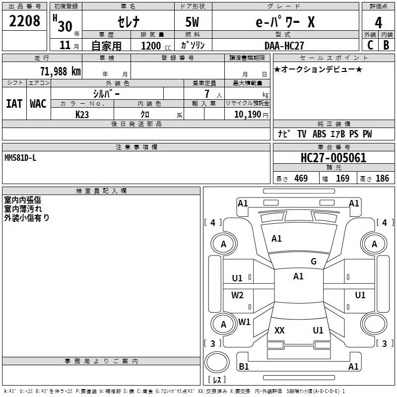 Nissan SERENA с аукциона Японии TAA Kinki лот № 2208