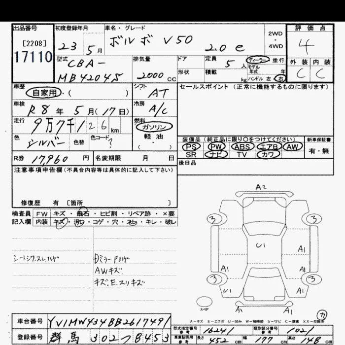 Volvo V50 с аукциона Японии JU Saitama лот № 17110