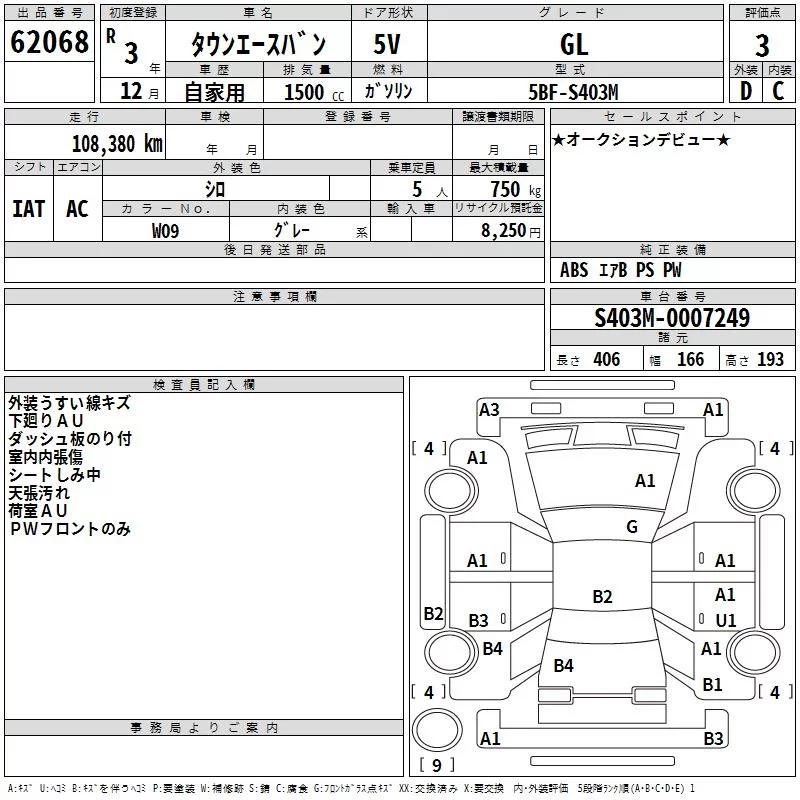 Toyota TOWN ACE VAN с аукциона Японии TAA Kinki лот № 62068