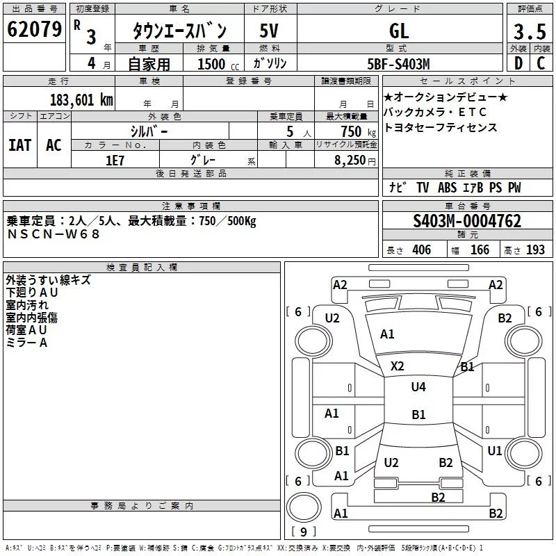 Toyota TOWN ACE VAN с аукциона Японии TAA Kinki лот № 62079