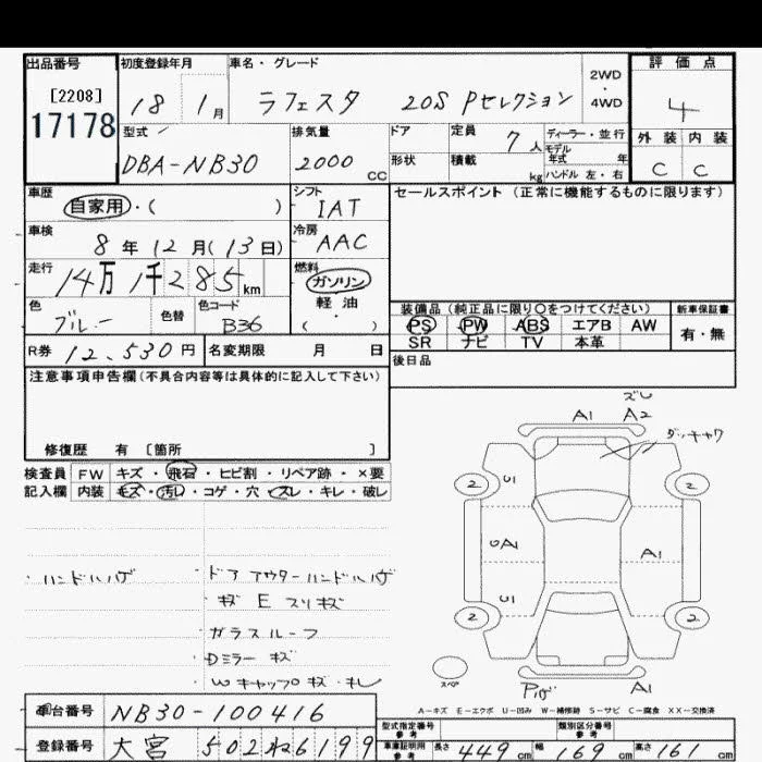 Nissan LAFESTA с аукциона Японии JU Saitama лот № 17178