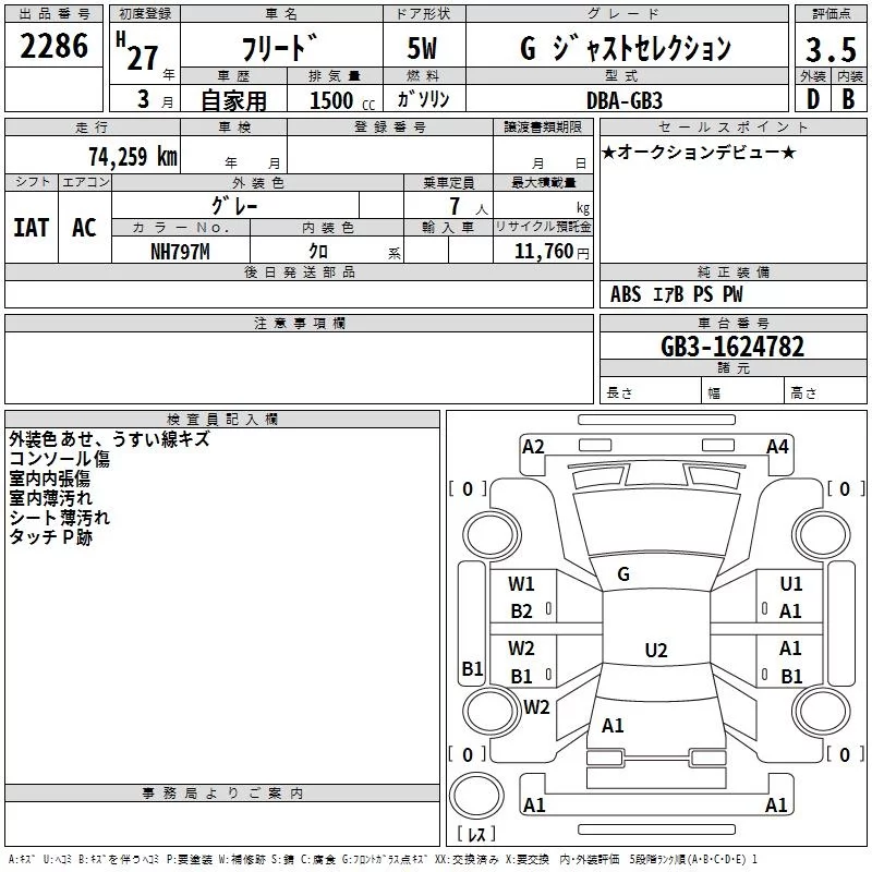 Honda FREED с аукциона Японии TAA Kinki лот № 2286