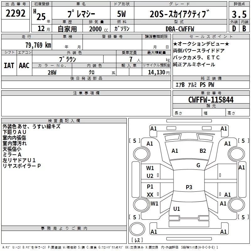 Mazda PREMACY с аукциона Японии TAA Kinki лот № 2292