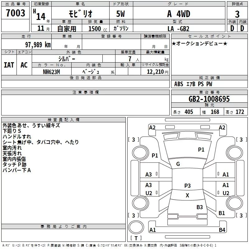 Honda MOBILIO с аукциона Японии TAA Kinki лот № 7003