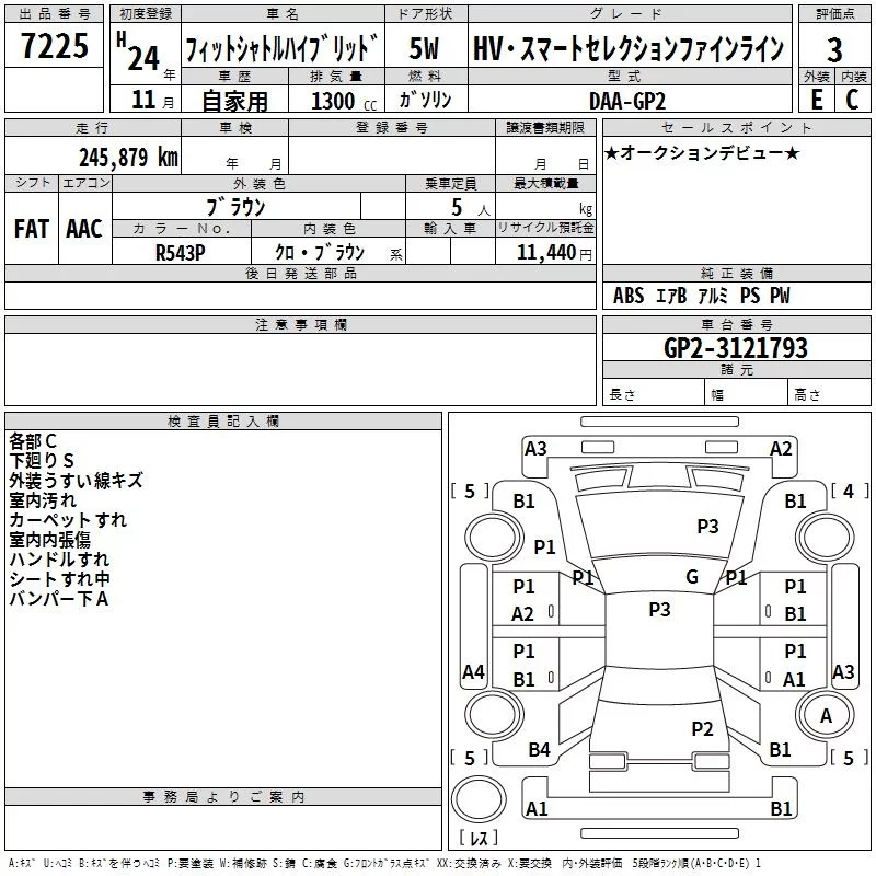 Honda FIT SHUTTLE с аукциона Японии TAA Kinki лот № 7225