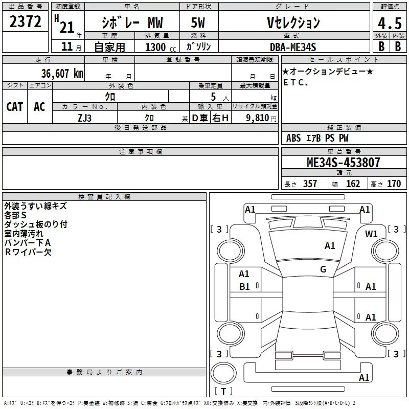 Suzuki CHEVROLET MW с аукциона Японии TAA Kinki лот № 2372