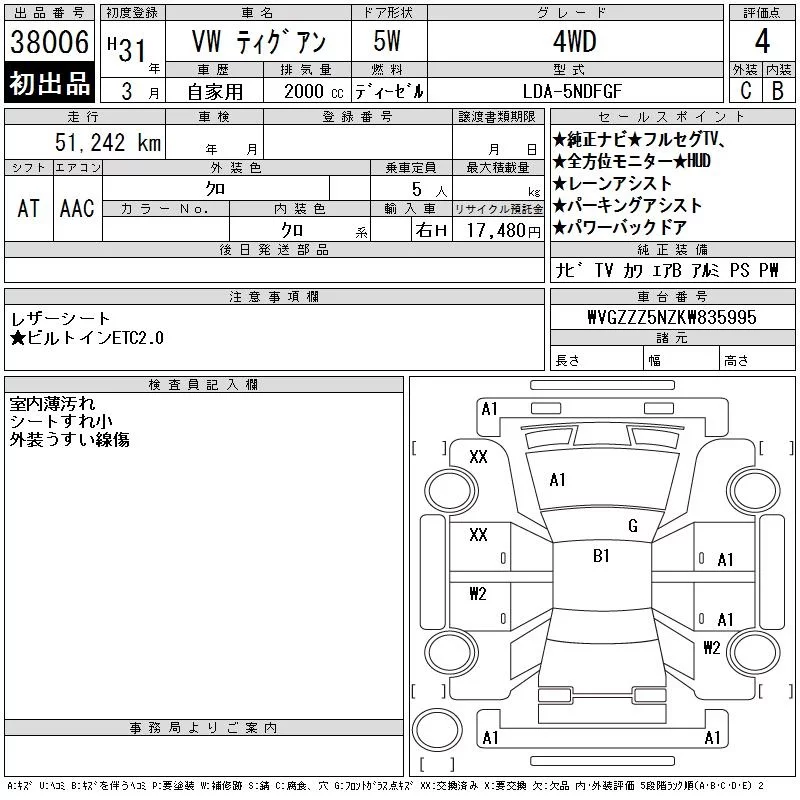 Volkswagen TIGUAN с аукциона Японии CAA Chubu лот № 38006