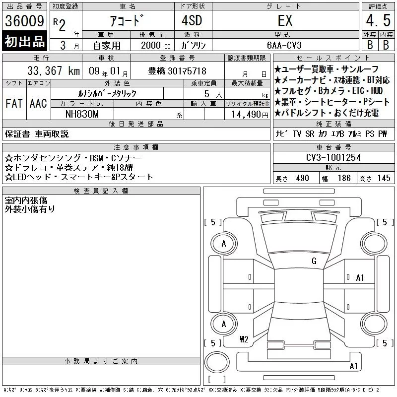Honda ACCORD с аукциона Японии CAA Chubu лот № 36009