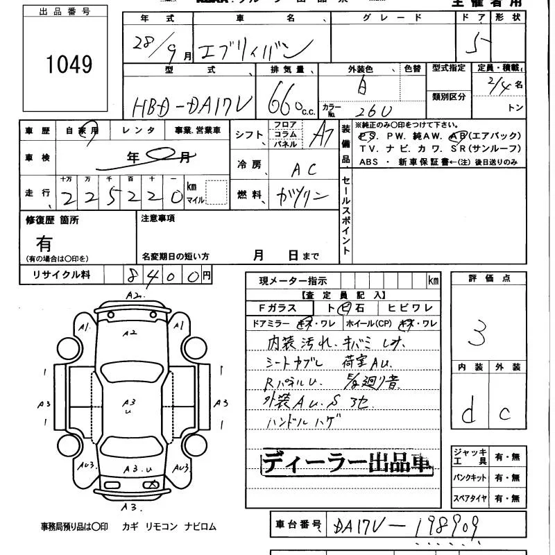 Suzuki EVERY с аукциона Японии KCAA Minami Kyushu лот № 1049