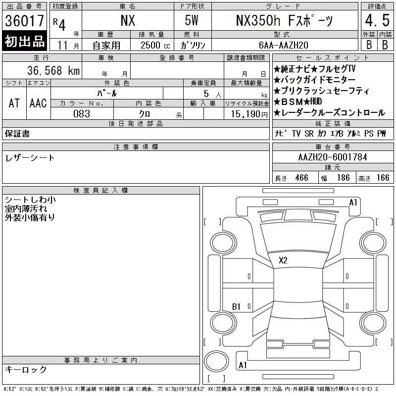 Lexus NX с аукциона Японии CAA Chubu лот № 36017