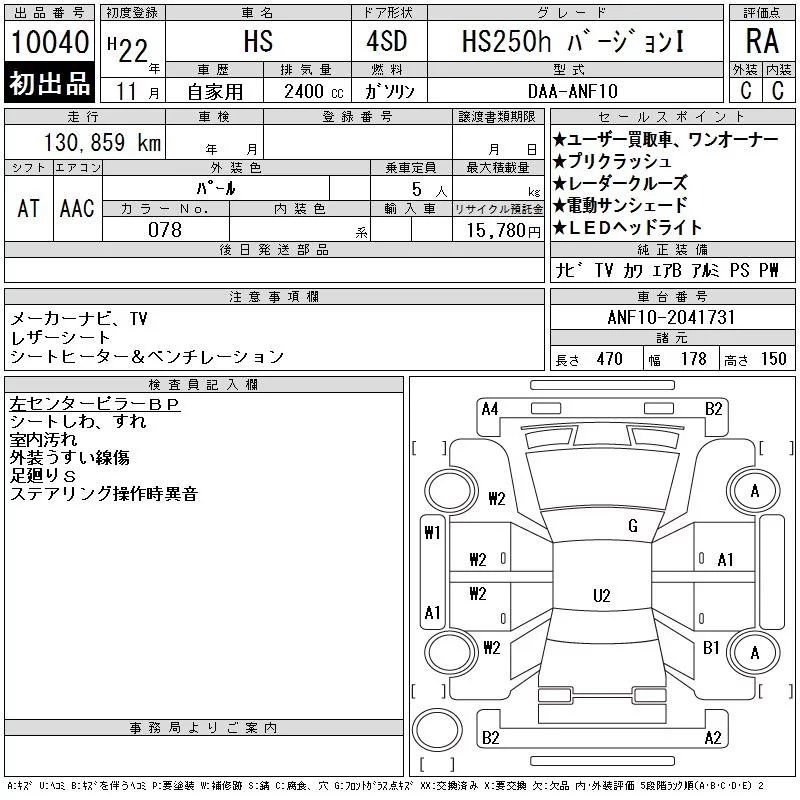 Lexus HS с аукциона Японии CAA Chubu лот № 10040