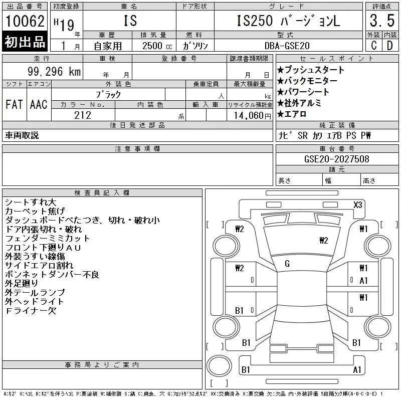Lexus IS с аукциона Японии CAA Chubu лот № 10062