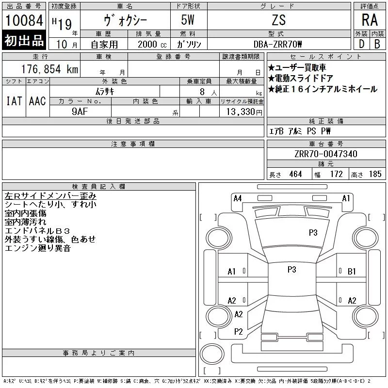 Toyota VOXY с аукциона Японии CAA Chubu лот № 10084