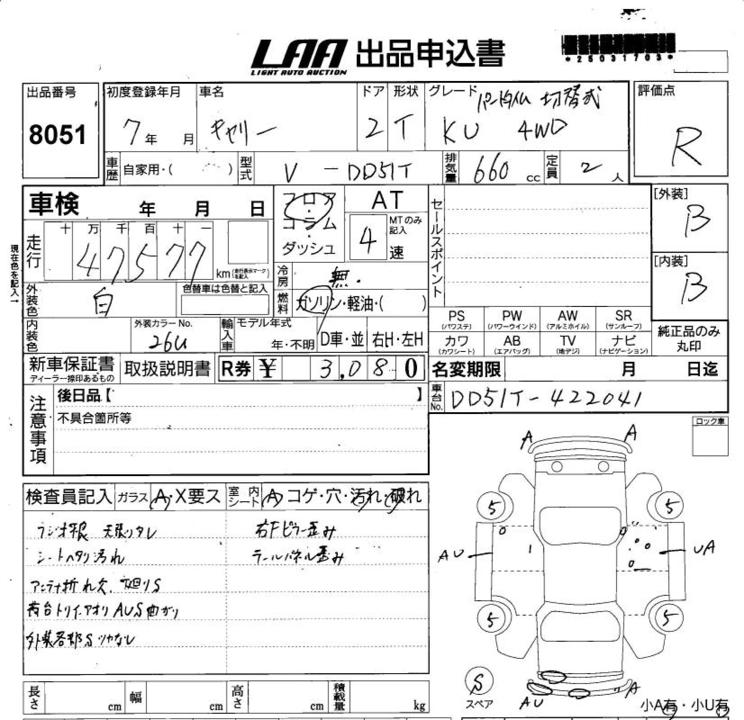 Suzuki CARRY TRUCK с аукциона Японии LAA Shikoku лот № 8051
