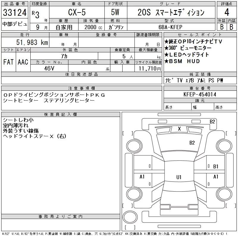 Mazda CX-5 с аукциона Японии CAA Chubu лот № 33124