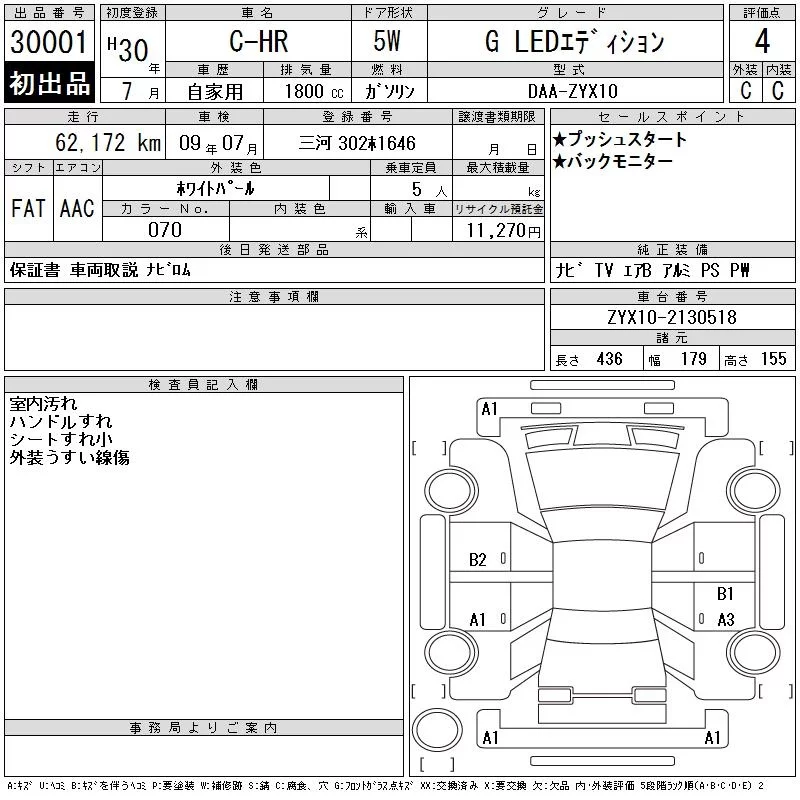 Toyota C-HR с аукциона Японии CAA Chubu лот № 30001