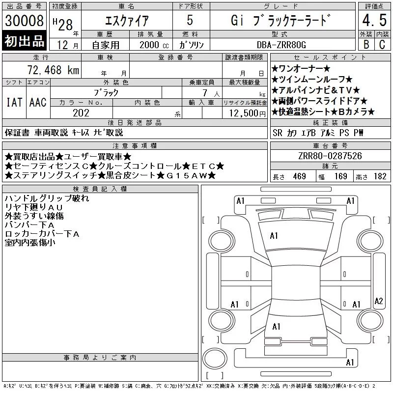 Toyota ESQUIRE с аукциона Японии CAA Chubu лот № 30008