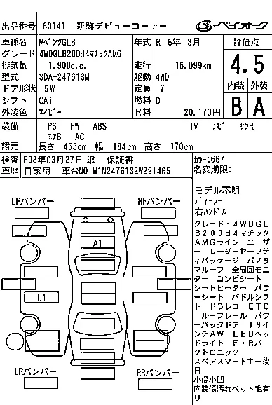 Mercedes-Benz GLB с аукциона Японии BAYAUC лот № 60141