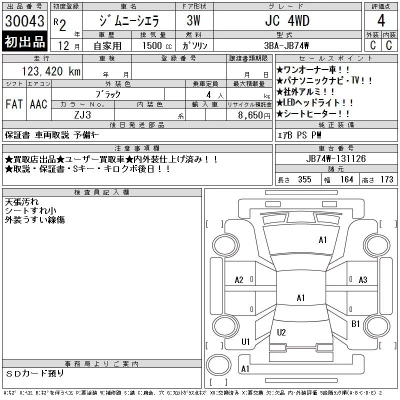 Suzuki JIMNY SIERRA с аукциона Японии CAA Chubu лот № 30043