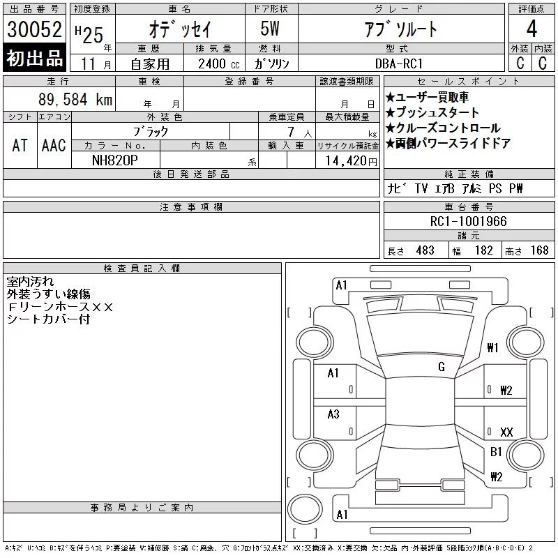 Honda ODYSSEY с аукциона Японии CAA Chubu лот № 30052