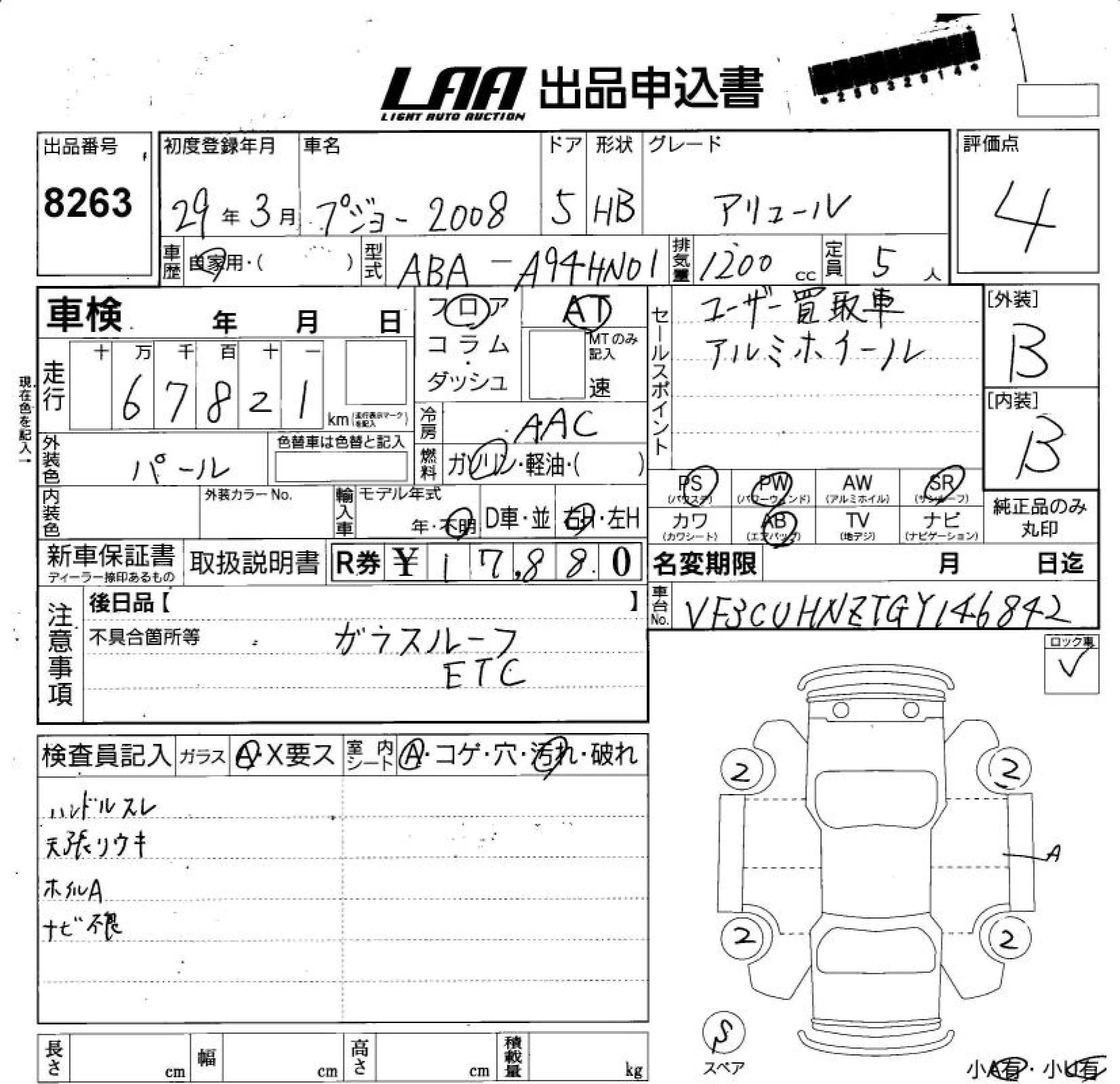 Peugeot 2008 с аукциона Японии LAA Shikoku лот № 8263
