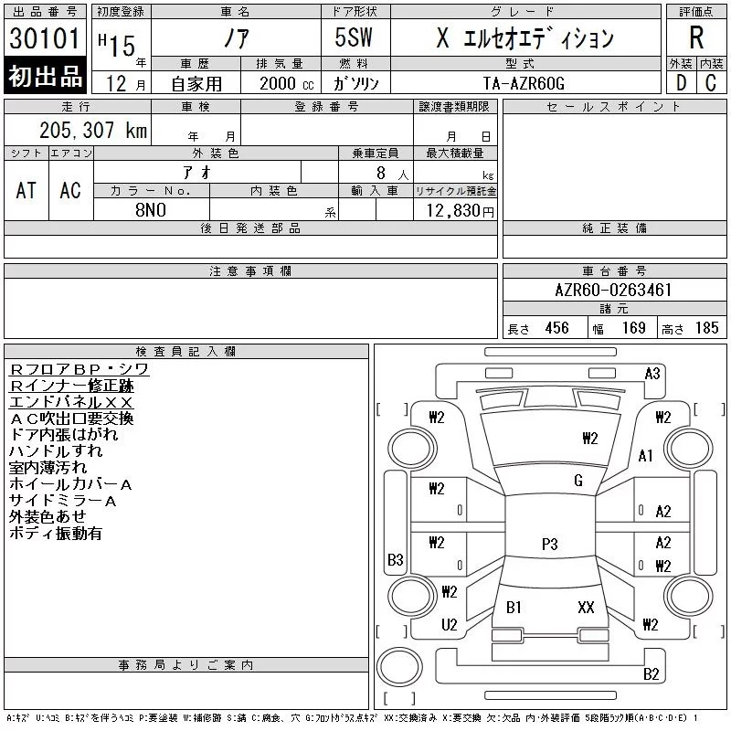 Toyota NOAH с аукциона Японии CAA Chubu лот № 30101