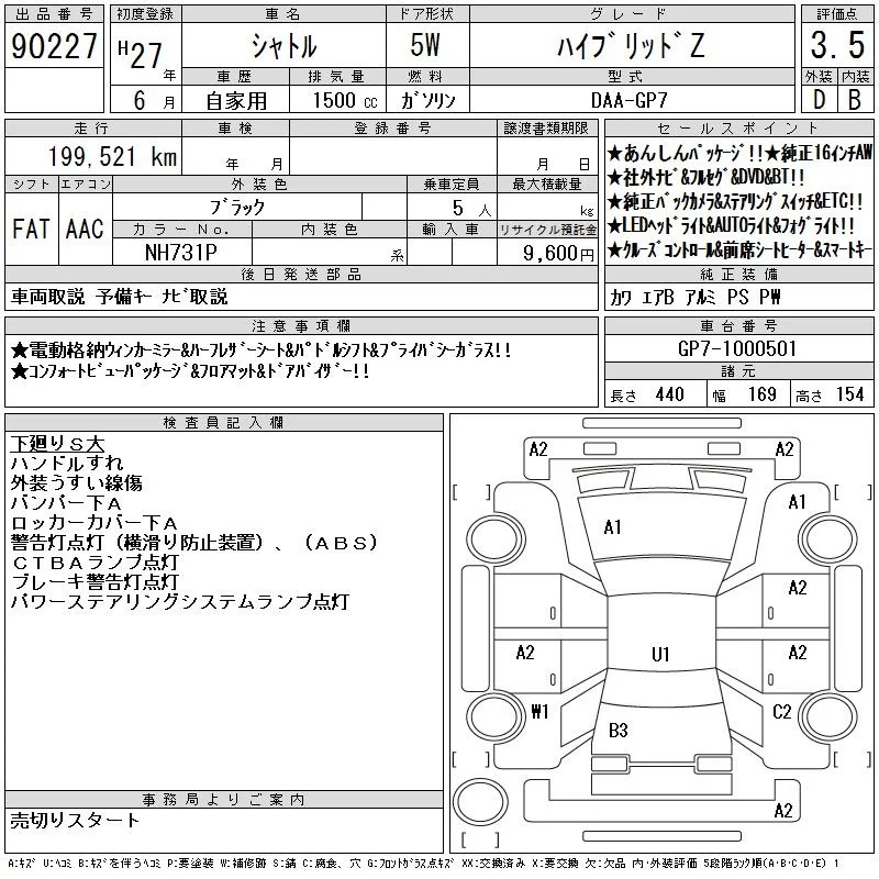 Honda SHUTTLE с аукциона Японии CAA Chubu лот № 90227