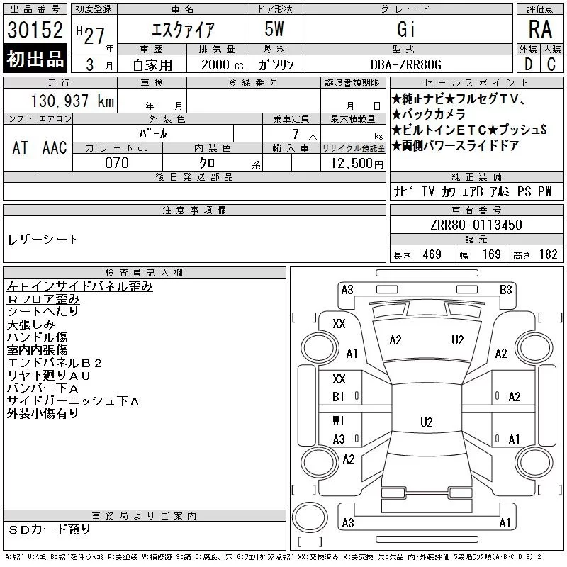 Toyota ESQUIRE с аукциона Японии CAA Chubu лот № 30152