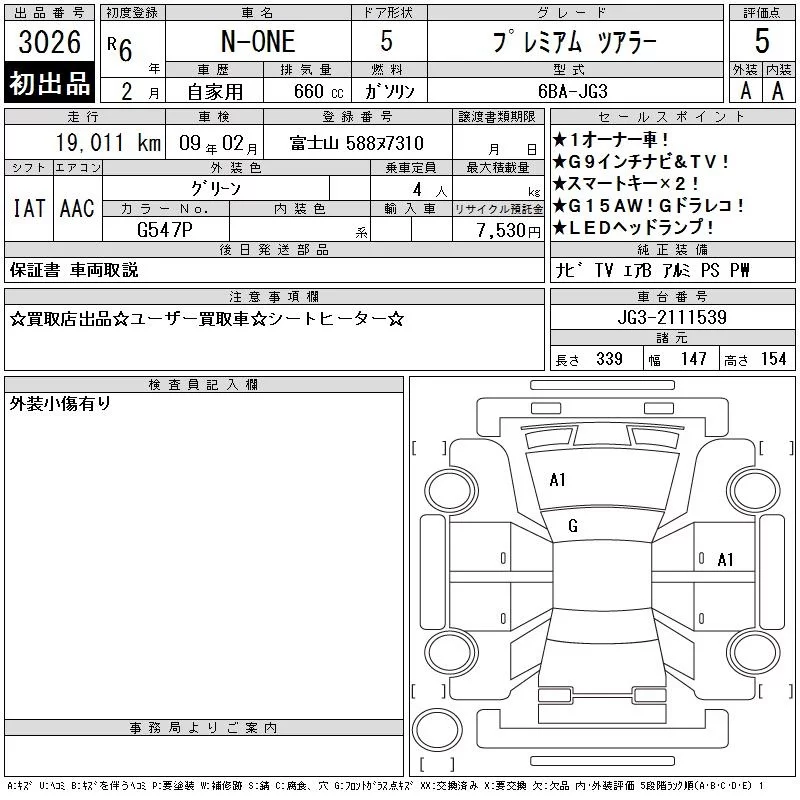 Honda N ONE с аукциона Японии CAA Chubu лот № 3026