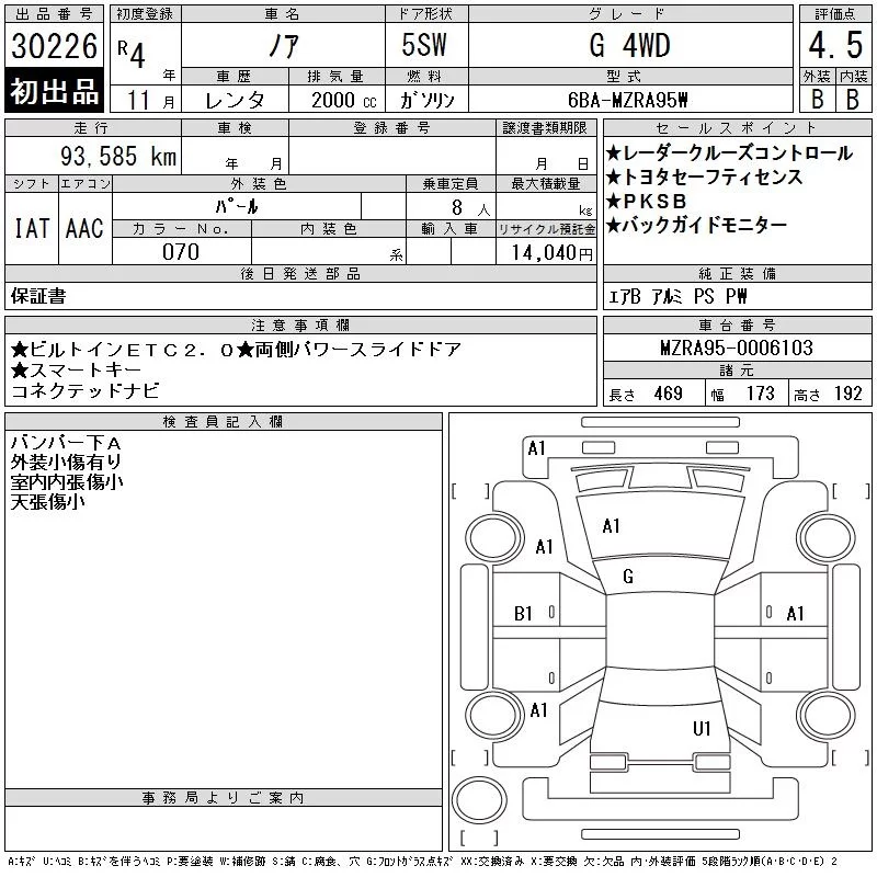 Toyota NOAH с аукциона Японии CAA Chubu лот № 30226