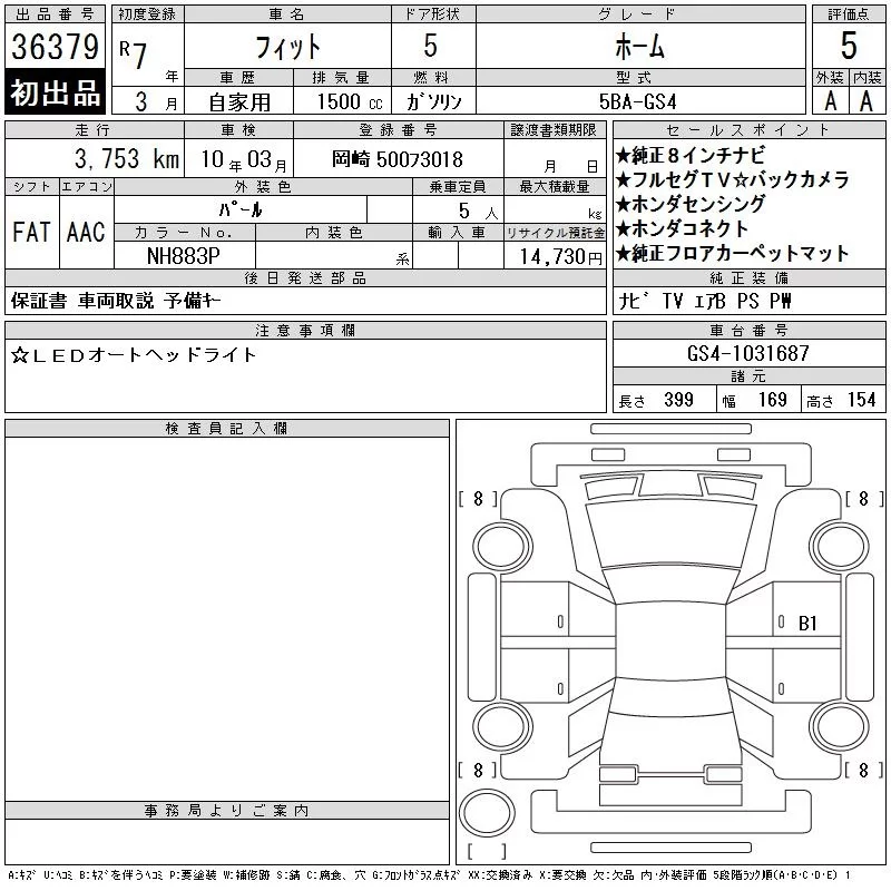 Honda FIT с аукциона Японии CAA Chubu лот № 36379