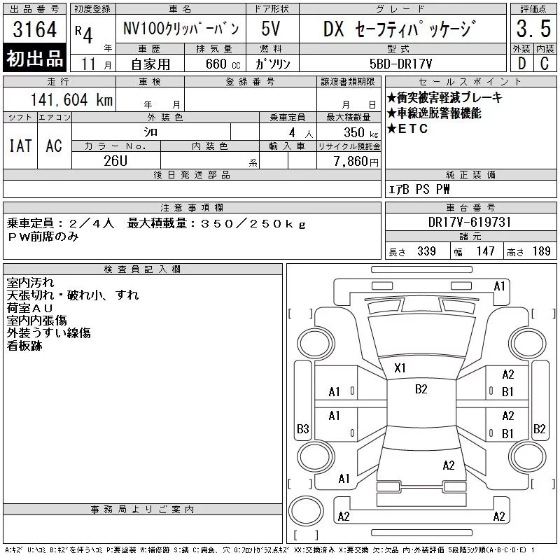 Nissan CLIPPER VAN с аукциона Японии CAA Chubu лот № 3164