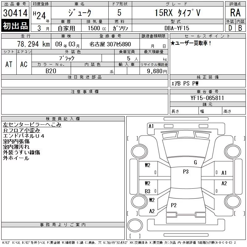 Nissan JUKE с аукциона Японии CAA Chubu лот № 30414