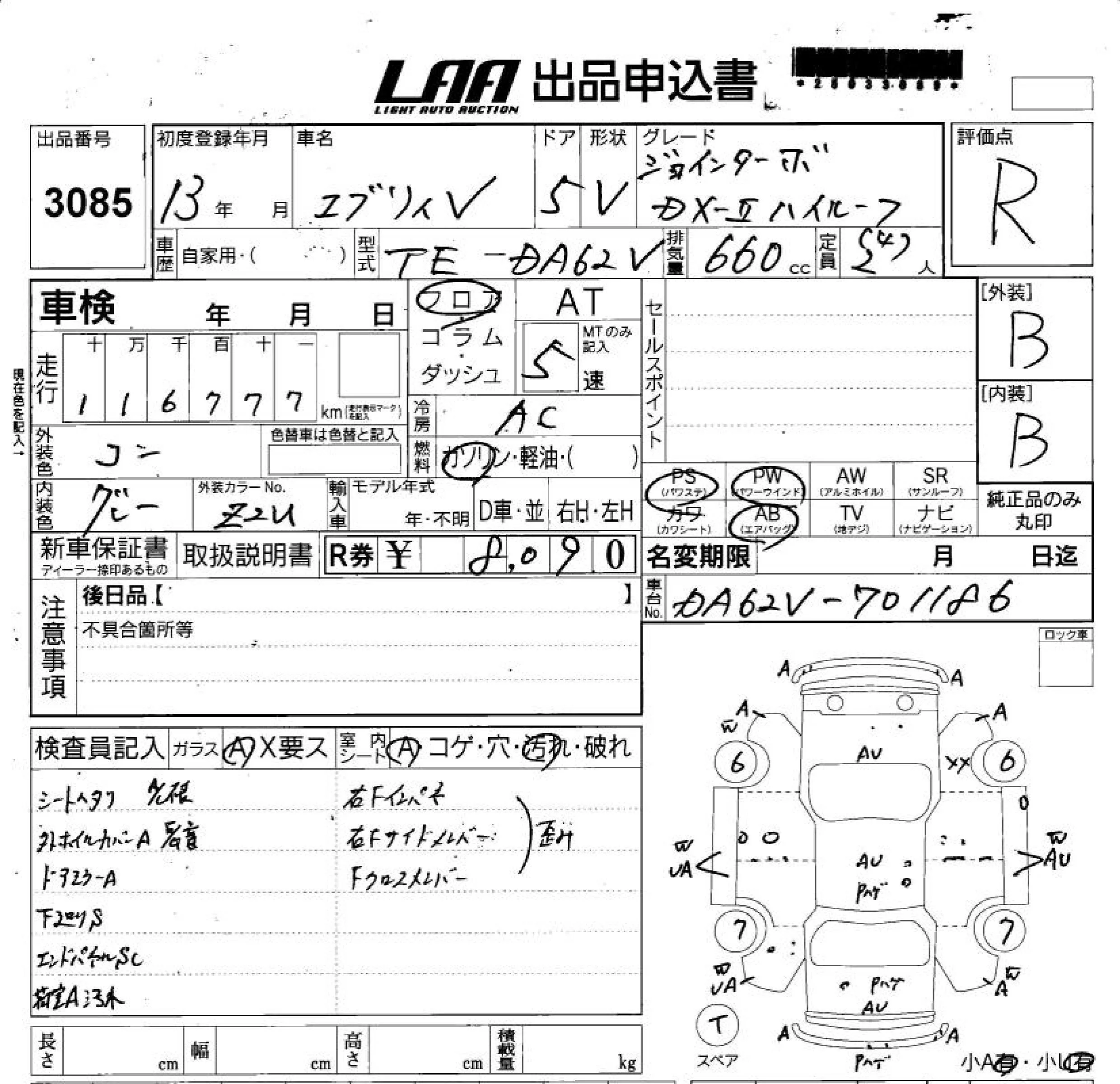 Suzuki EVERY с аукциона Японии LAA Shikoku лот № 3085